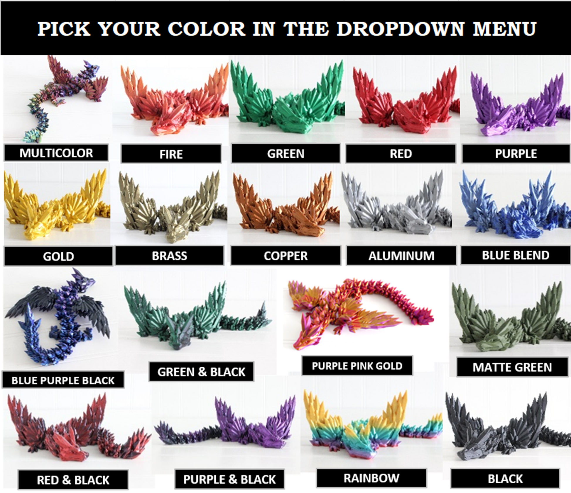 Due to the nature of 3D printing it is possible small pieces could break off if being aggressive, thus this dragon is not intended for small children due to a potential choking hazard. There are sharp points in these designs (quickly round-off with sandpaper if desired). Intended for indoor use. Should be kept away from heat sources (wood stoves, hot cars, intense direct sunlight, etc.).