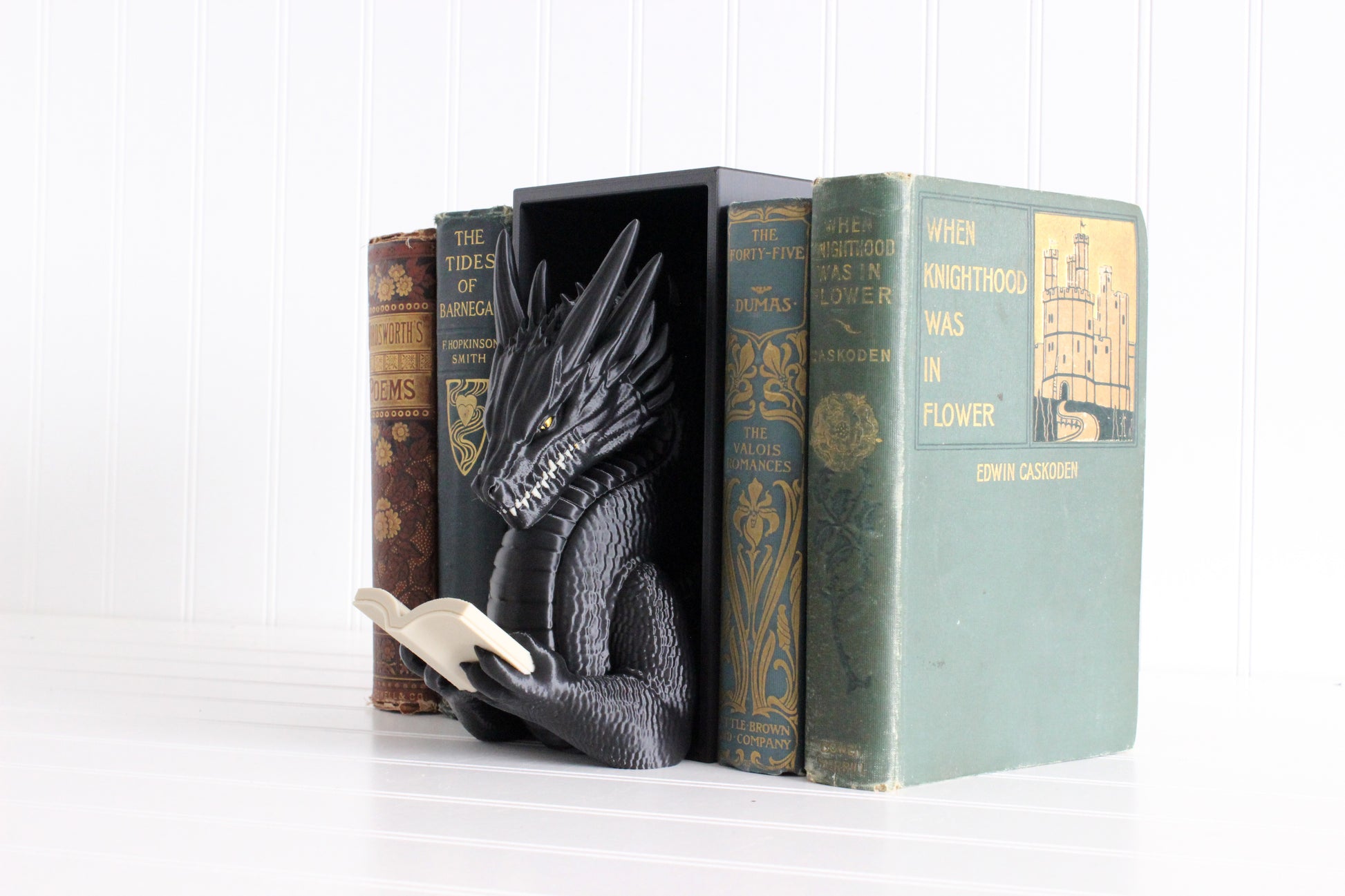 Dragon Book Nook, Dragon Reading, Bookshelf Decor, 3D Print