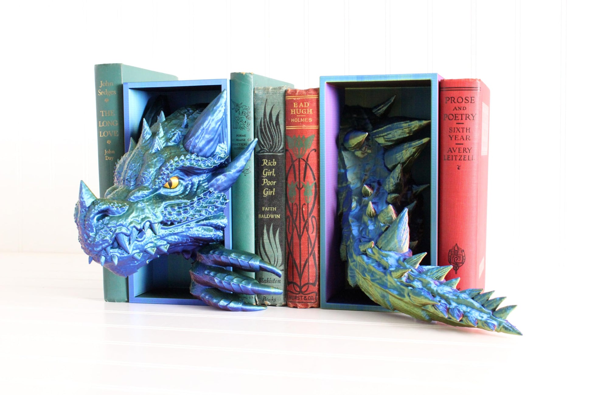 Dragon Book Nook SET, Dragon Tail and Head, Bookshelf Decor, 3D Print, Bookish