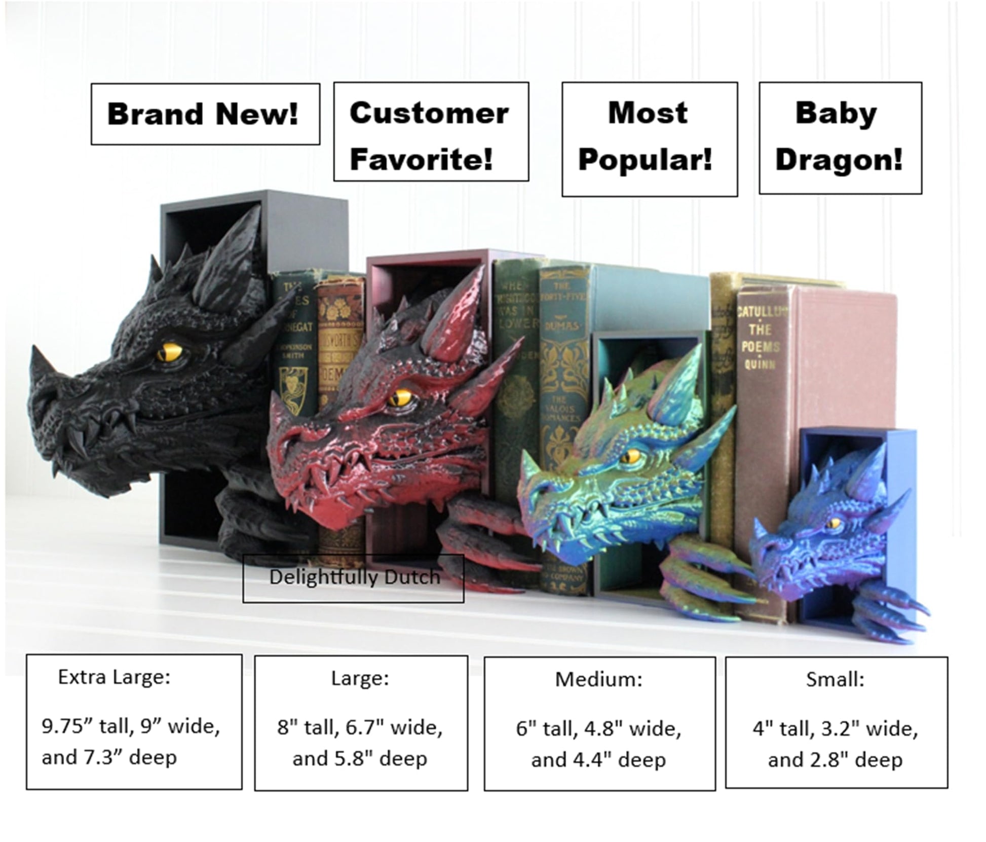 The product must not overhang the display area. The product must be displayed in a manner that prevents someone from accidentally bumping into the product. Not intended for children ages 12 and under. Due to the nature of 3D printing, it is possible small pieces could break off if handled aggressively, thus these dragons are not intended for children due to a potential choking hazard. There are sharp points in these designs (quickly round-off with sandpaper if desired). Intended for indoor use. Β Should be kept away from heat sources (wood stoves, hot cars, intense direct sunlight, etc.). Some 3D printed materials may be flammable.Β