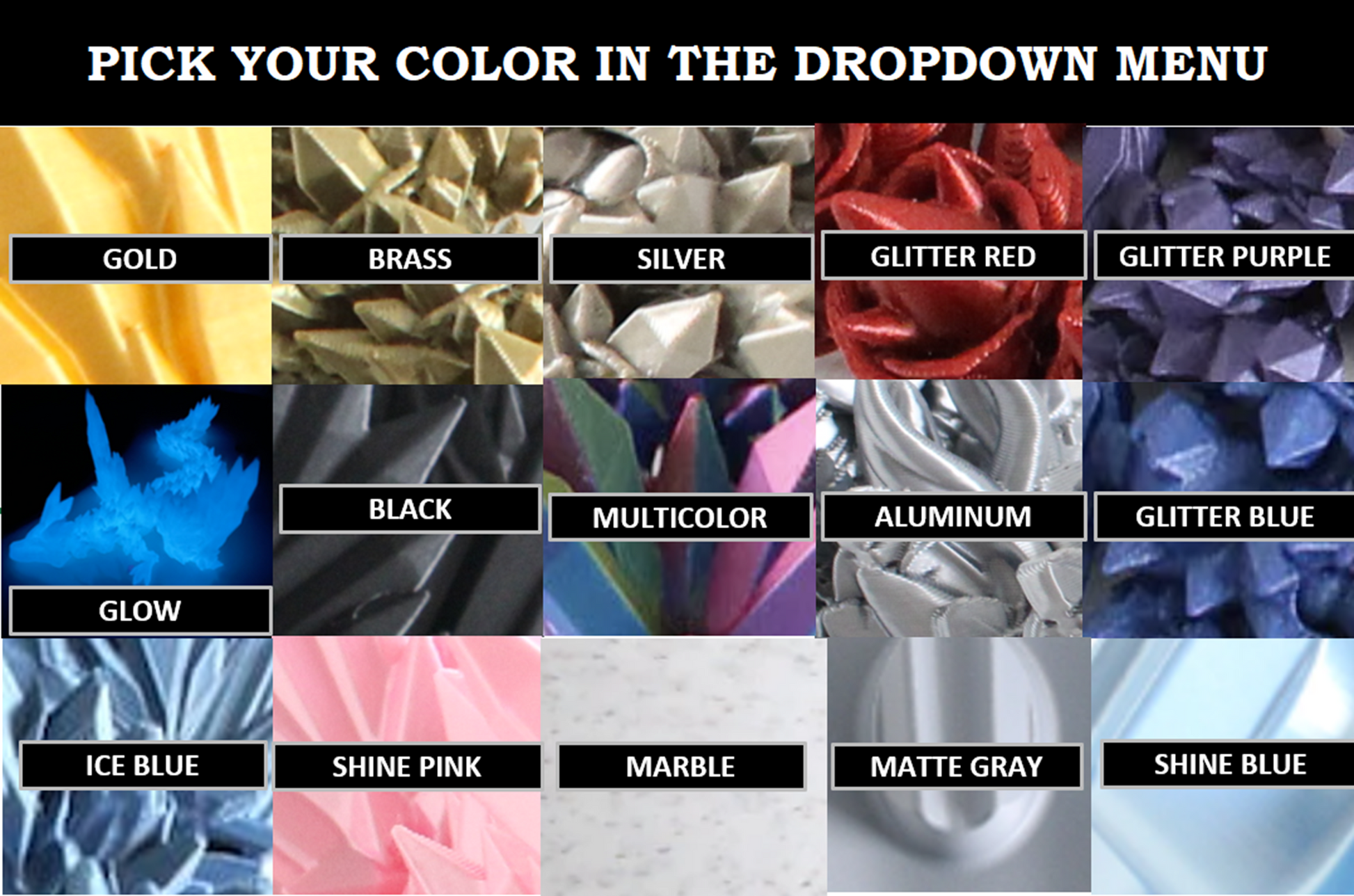 Use the drop-down menus to pick your shark color and size. The colors shown in the pictures are "Aluminum" and "Matte Gray" and "Shine Blue" and "Glitter Blue".